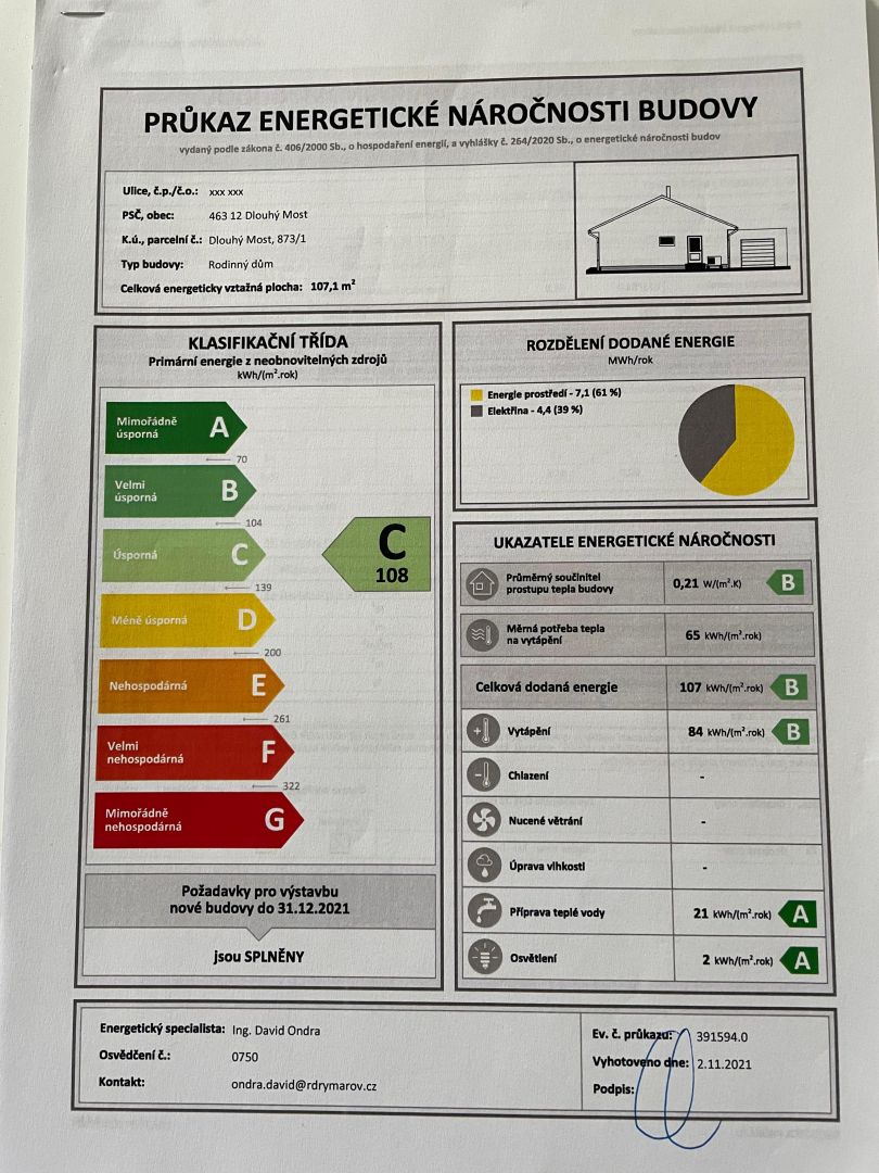 Energetický štítek s označením C i půdorys domu je patrný níže.