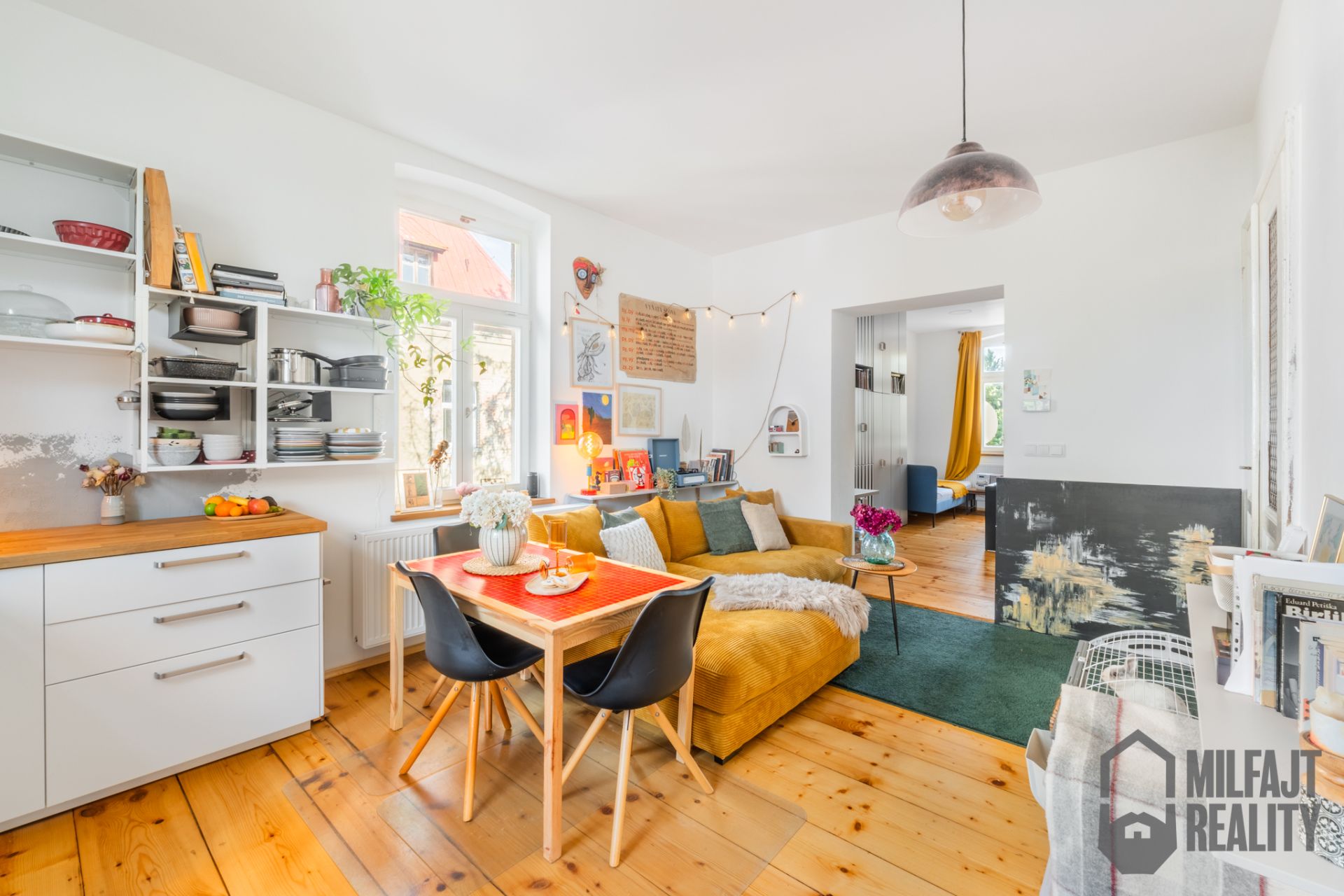 Velkorysá výměra, vysoké stropy, prkenné podlahy a zároveň styl, tohle si vás získá.