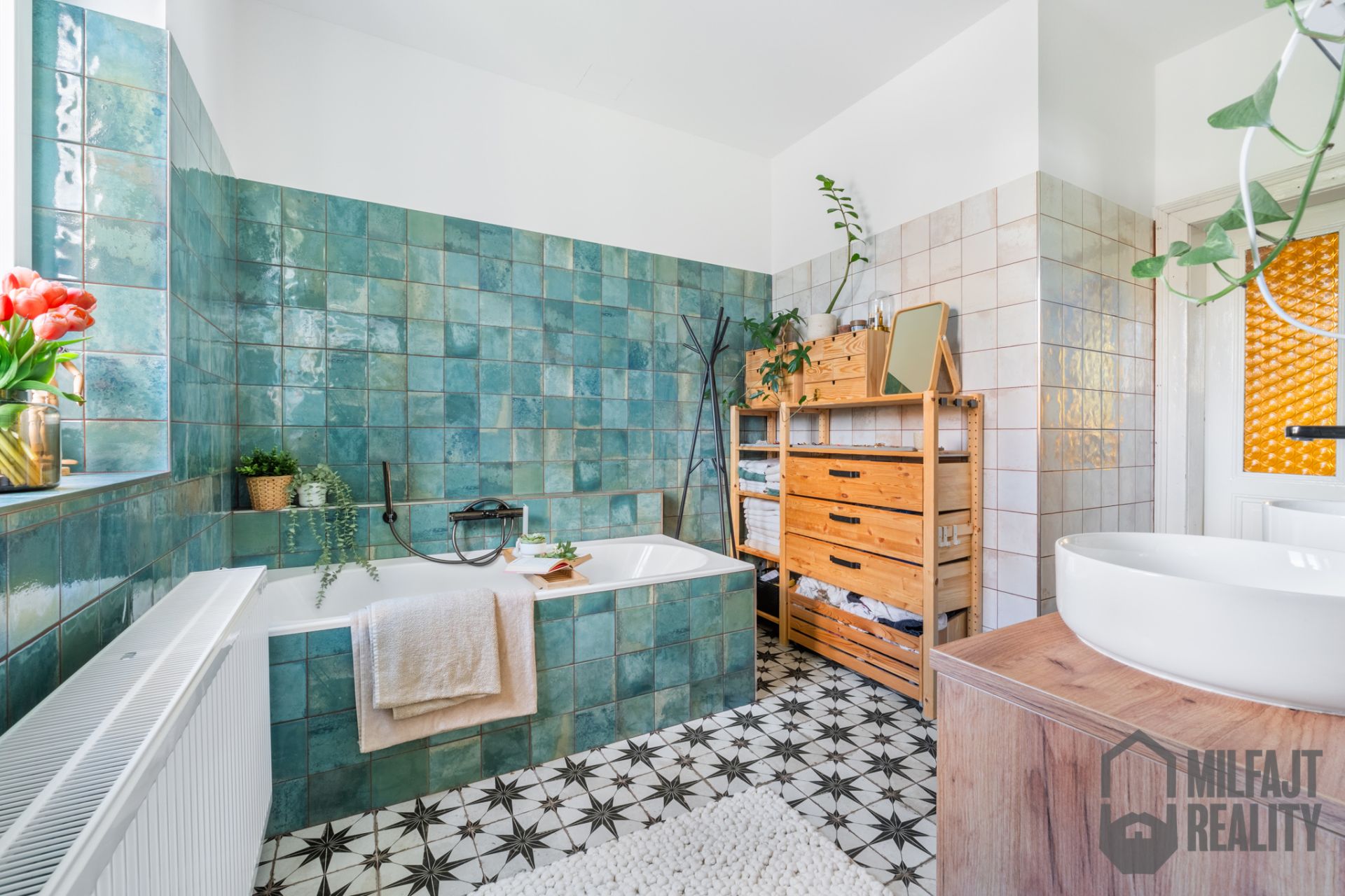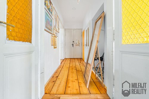 Vás si získá především pojetí bytu a jeho kvalitní rekonstrukce. Hned jak ve 2. patře otevřete dveře z chodby je jasné, že majitelka rekonstrukci pojala poctivě. Za zmínku stojí dřevěné prkenné podlahy, dřevěná okna, nové rozvody elektřiny nebo krásná koupelna s vanou.