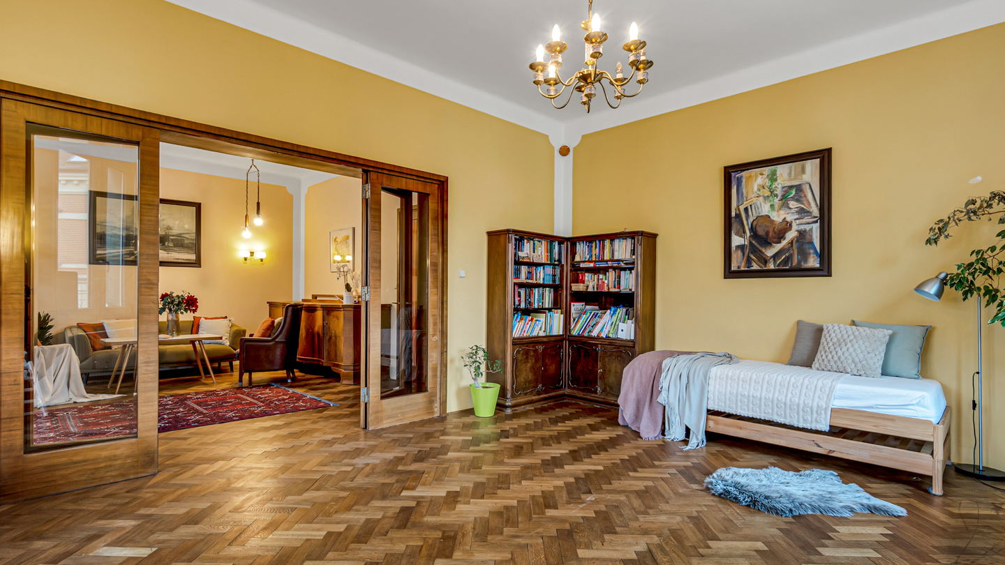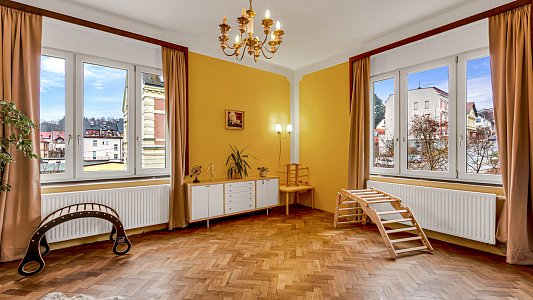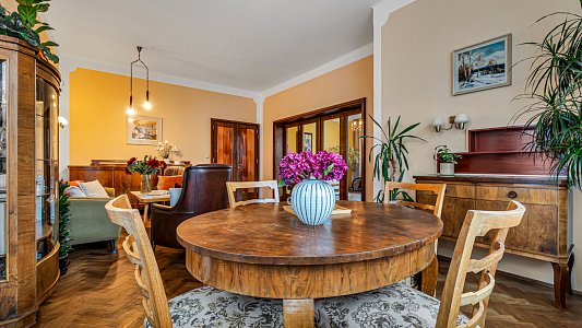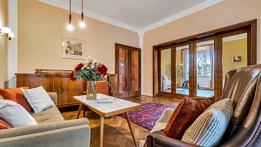 To všechno v nádherné vile z roku 1910, která patřila majiteli sousední továrny. Zkrátka byt na úrovni a s neopakovatelnou atmosférou.
