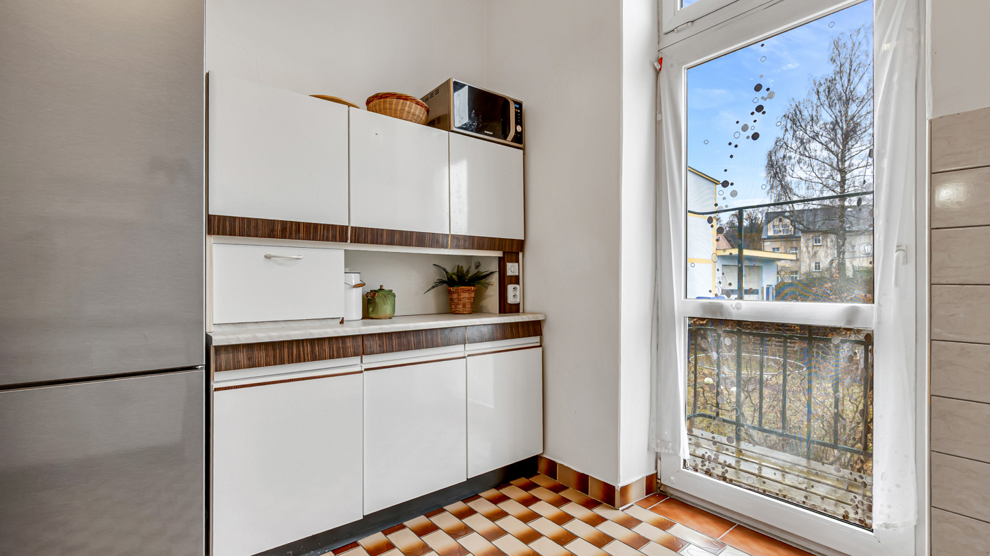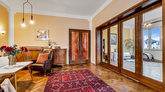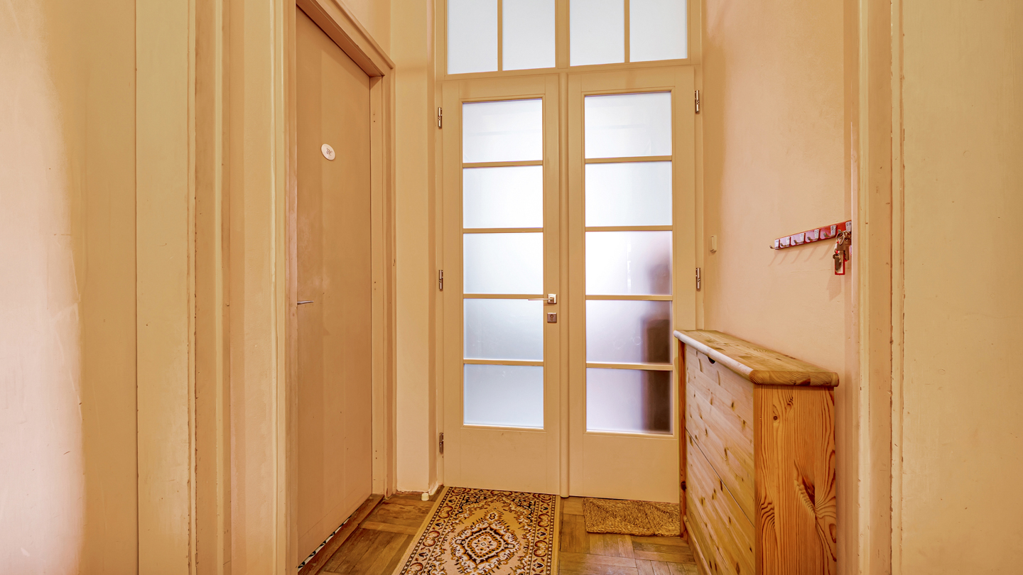 Jen co vstoupíte do domu a jdete dřevěným schodištěm do prvního patra, uvědomíte si kouzlo domu. Renovované vstupní dveře dají hned najevo, že o byt se starali majitelé s úctou k jeho hodnotě.