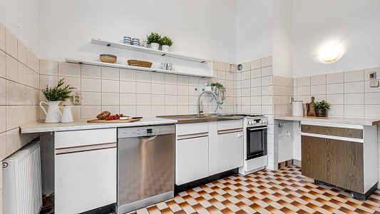 Současní majitelé v bytě instalovali nový plynový kotel, vyměnily všechna okna (plastová, trojskla) a citlivě zmodernizovali koupelnu. Naopak budoucí majitele čeká dokončení kuchyně a drobné renovační práce, které už záleží na vkusu.